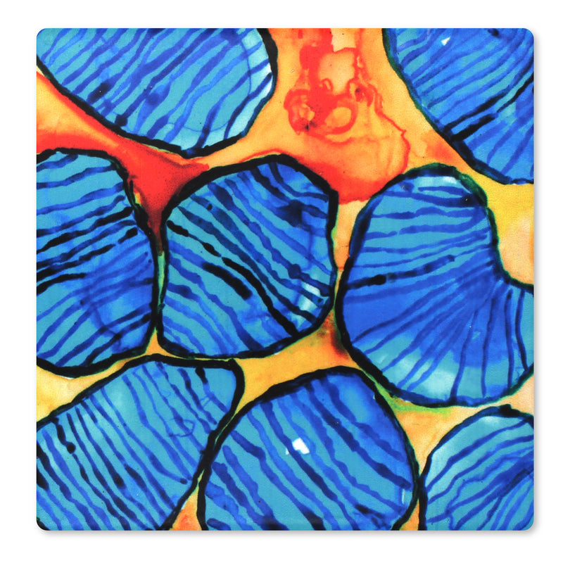 This ceramic coaster set was made from my Abstract Mitochondria watercolor print that shows the the mitochondria, the cellular organelle in charge of converting food into energy for the body.
