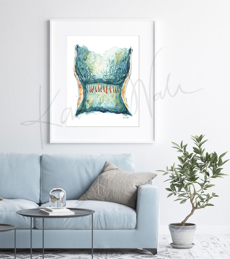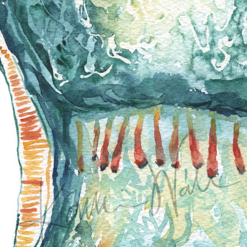 This beautifully colored abstract anal canal print was commissioned as a farewell gift. The commissioner wanted to recognize and thank his colleague, an anal health specialist and nurse practitioner who spent years preventing cancer in so many patients. He requested an abstract take on the subject matter to create a more tasteful and artistic final piece. Believe it or not, there aren’t really “odd requests” when you’re an anatomy artist!
