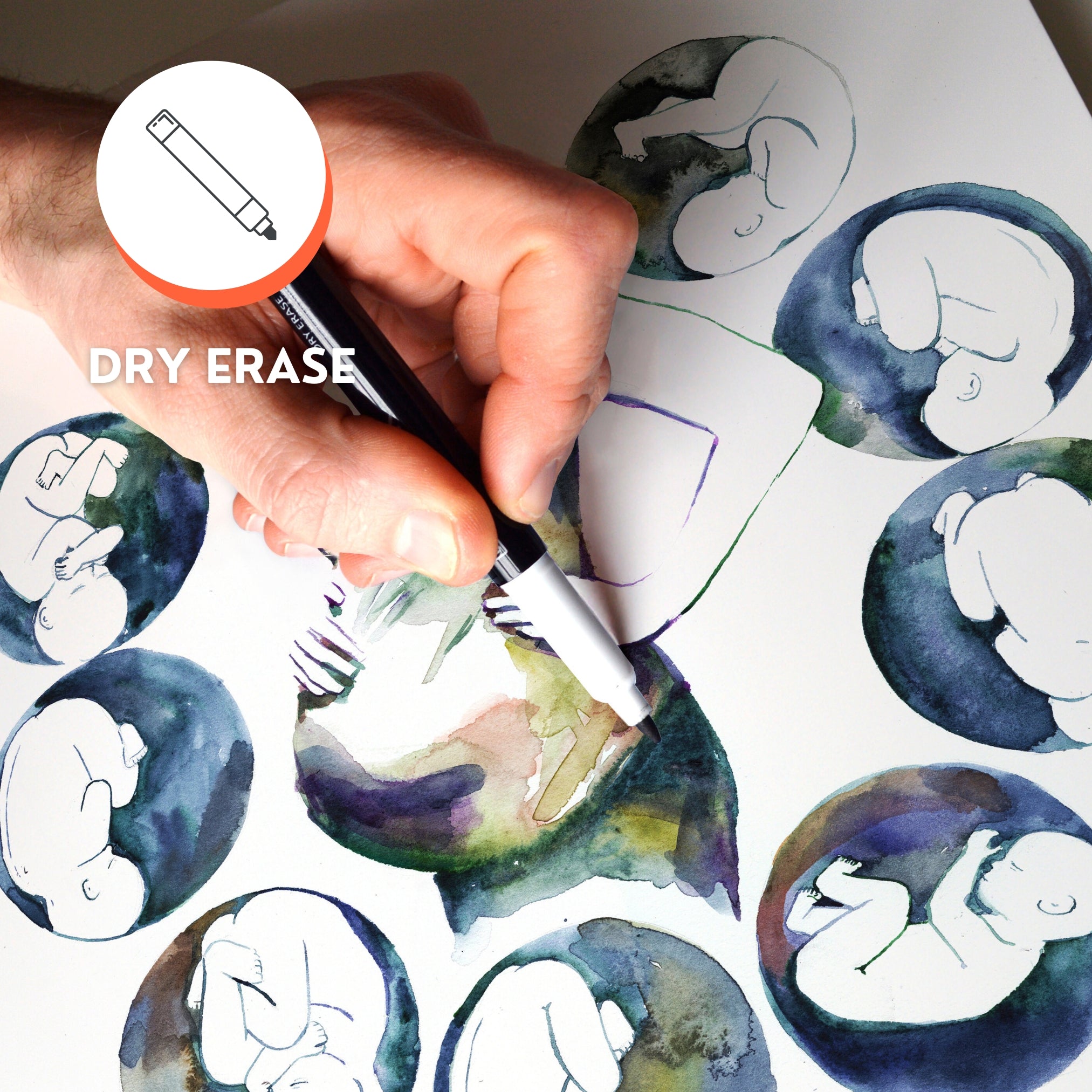 Use a dry-erase marker to write and draw on any Anato-Panel! Wipe off or erase when you are done to keep your artwork clean and ready for your next patient.