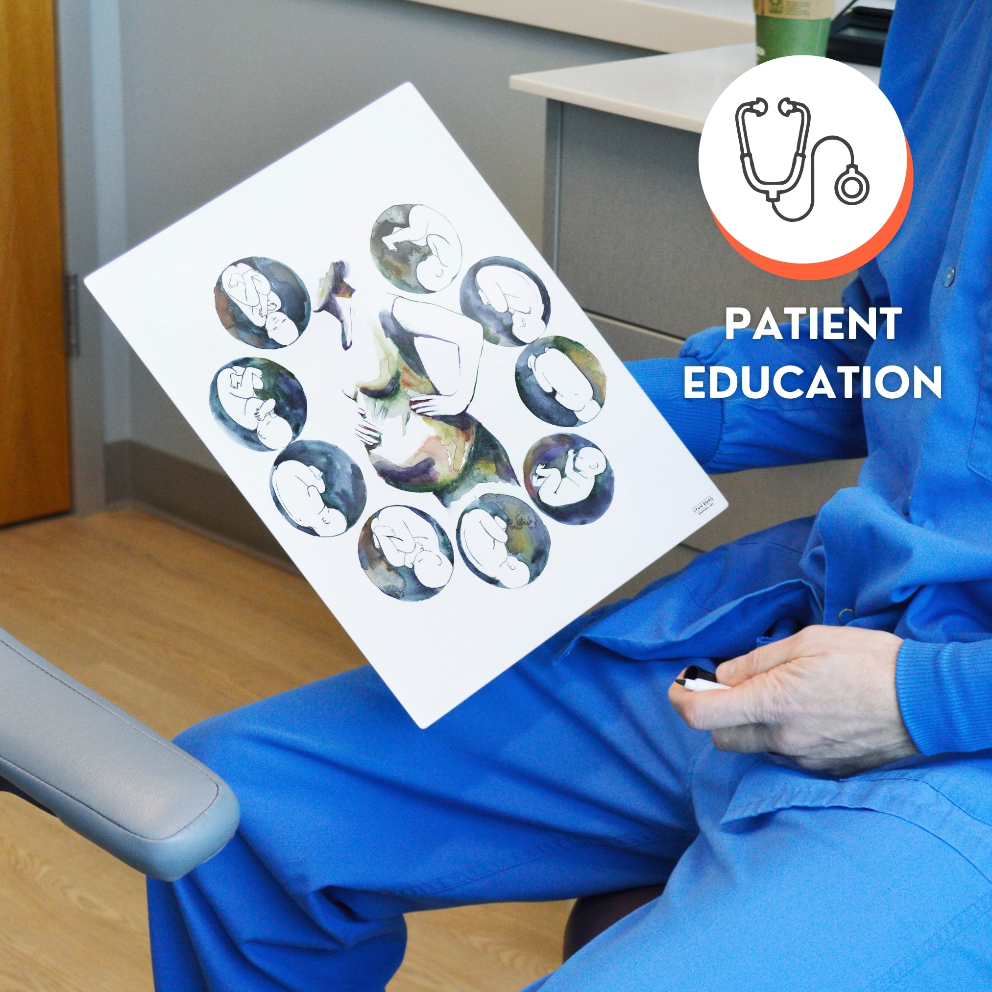 The Fetal Compass Rose Panel is a useful guide for understanding baby’s position on the womb. This Anato-Panel™ is a durable, metal, hands-on patient education tool designed for OBGYNs, doulas, pediatricians, physicians, and maternal-child health professionals.