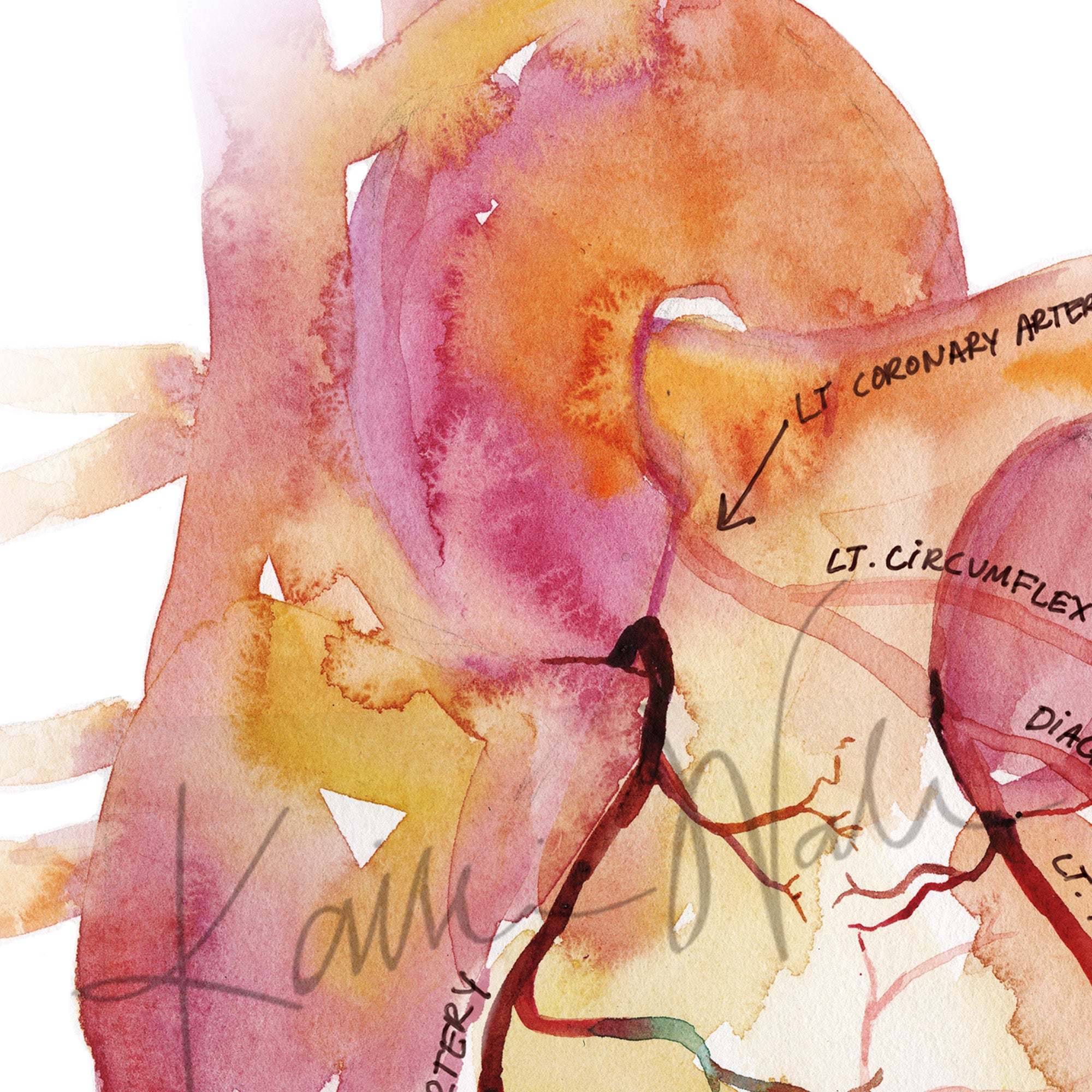 Labeled Coronary Arteries Watercolor Print
