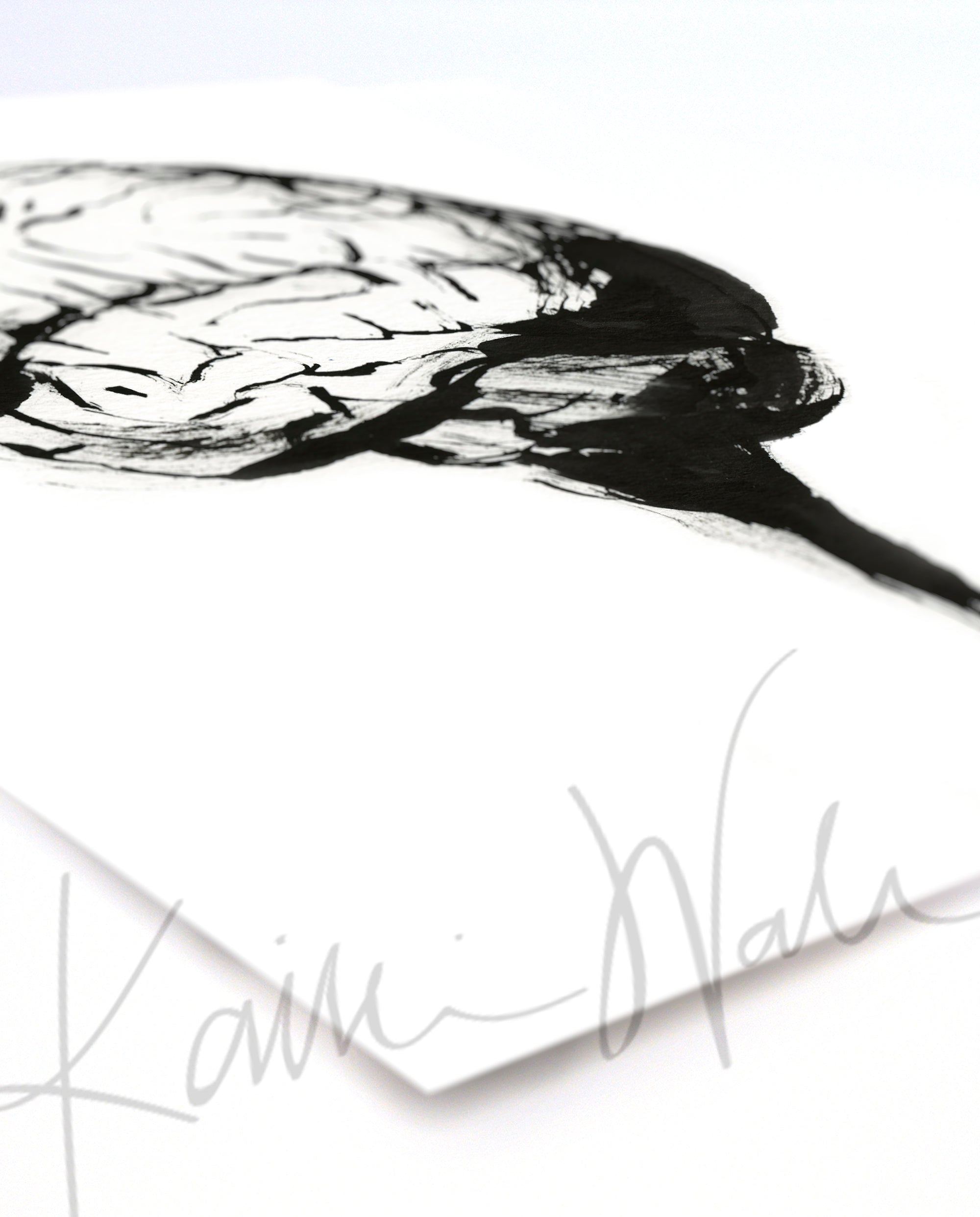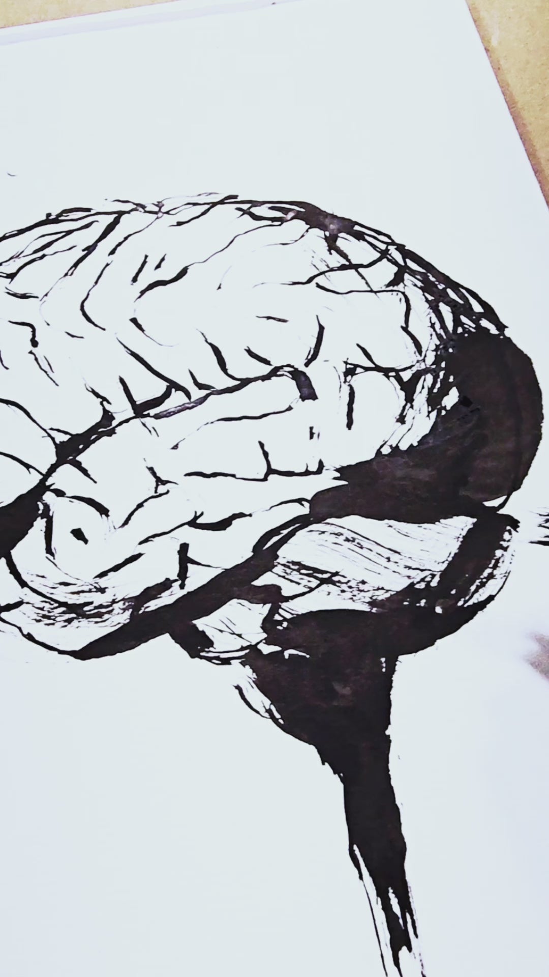 This ink brain is part of my new series of ink organs! I was inspired by the sumi-e style of painting, where the artist conveys the essence of an object with the fewest brushstrokes possible. I used calligraphy ink to achieve a clean black and white minimalist painting.