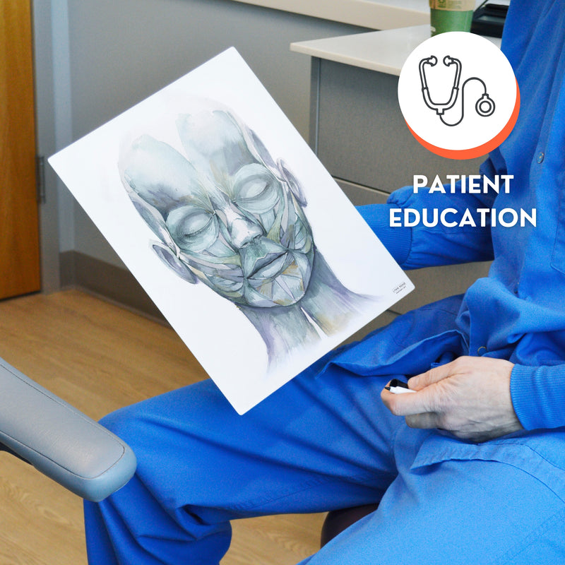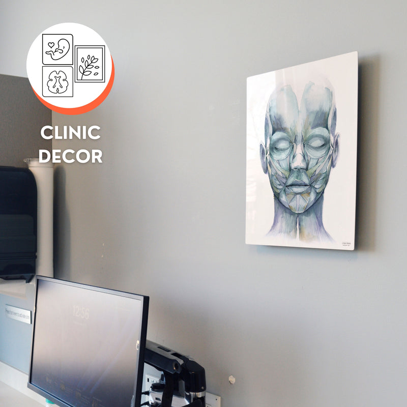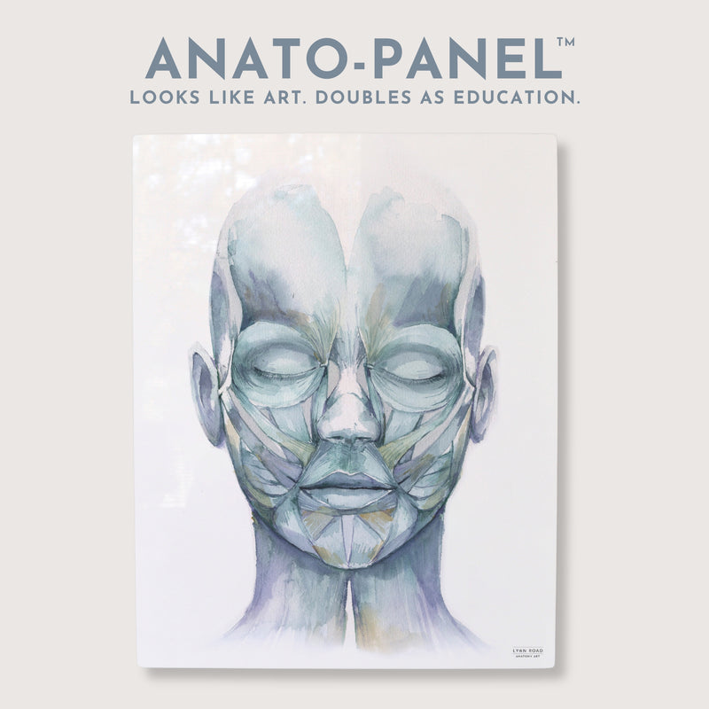 The Muscles of Facial Expression Anato-Panel™ is a beautifully designed, clinically accurate visual aid created specifically for med spas, dermatology offices, and aesthetic practices.
