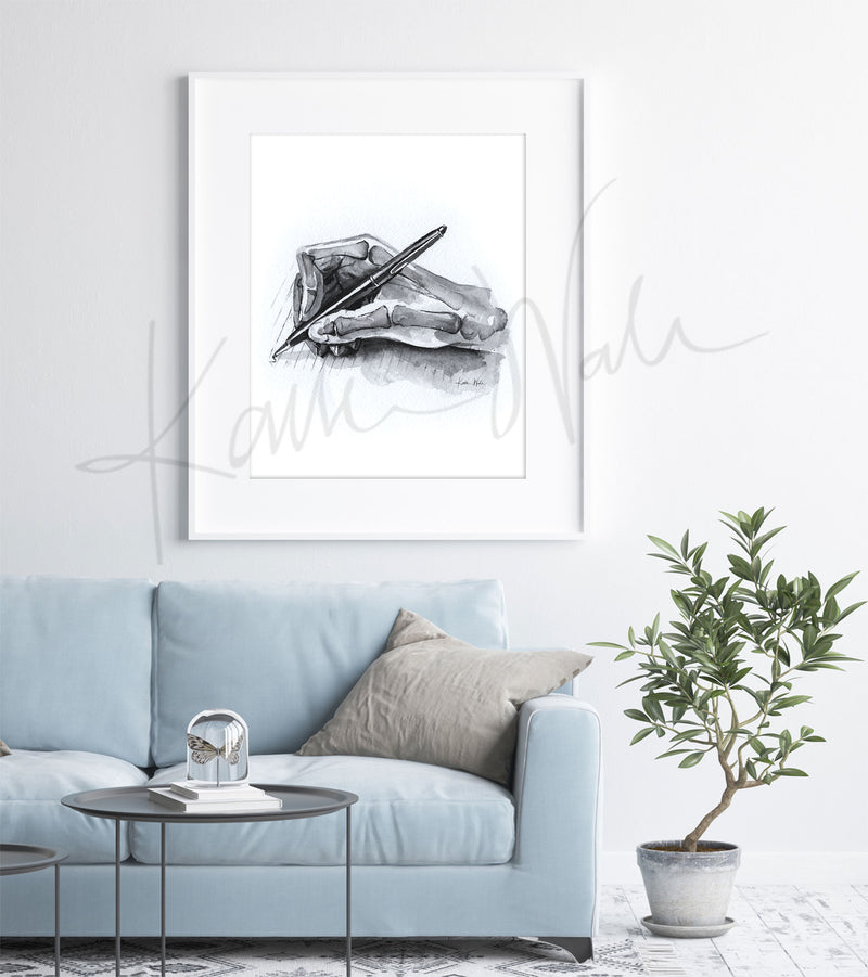 Writing Hand Watercolor Print